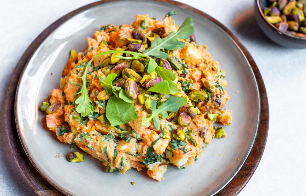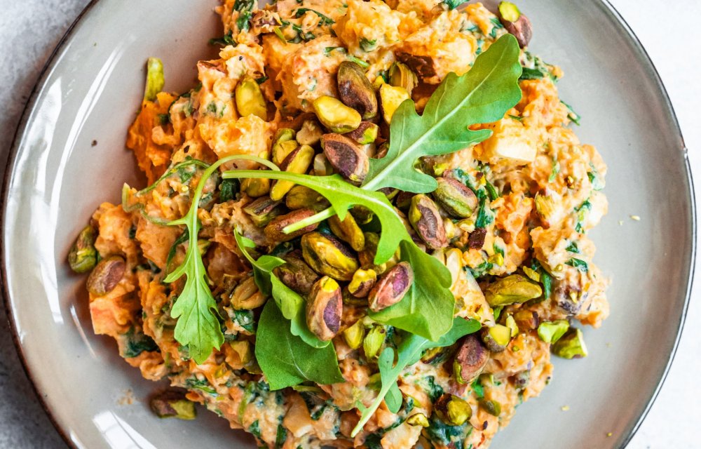 Nu het weer vroeger donker wordt, maakt onze pompoenstamppot met maar 6 ingrediënten jouw avond een stuk makkelijker. Deze heerlijke stamppot is snel klaar, gezond en ook superlekker. Je maakt ‘m met pompoenblokjes, zoete aardappel, appel, ongezouten pistachenootjes, zachte geitenkaas en rucola.