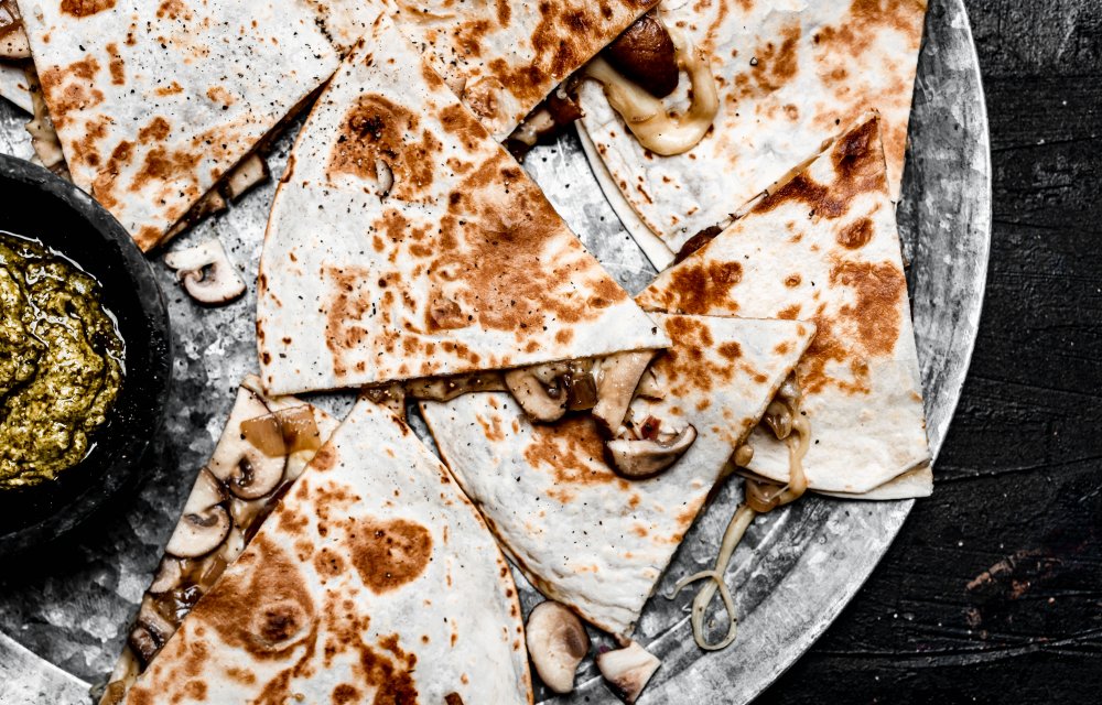 Mmm, deze quesadilla funghi is het ultieme comfort food! Deze keer vervangen we de klassieke Mexicaanse tosti door een vega variant met champignons en lekker veel mozzarella. Je zet hem binnen mum van tijd op tafel als lunch, snack of als deel van het avondeten. Eet smakelijk!