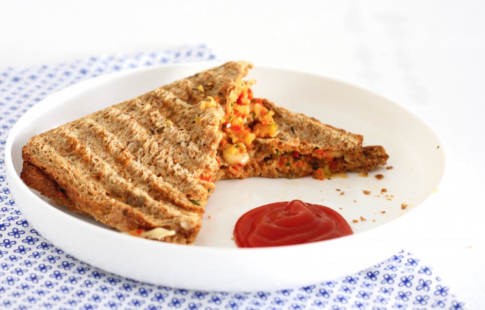 Groenten verstoppen in het eten van onze little ones blijft één van onze favoriete bezigheden. Je voelt hem vast al aankomen, ook de heerlijke ratatouille tosti’s van vandaag hebben weer een klein groente geheim 😉 Doordat de courgette en paprika zijn vermalen tot een fijne spread, wordt de inhoud van deze tosti heerlijk smeuïg.