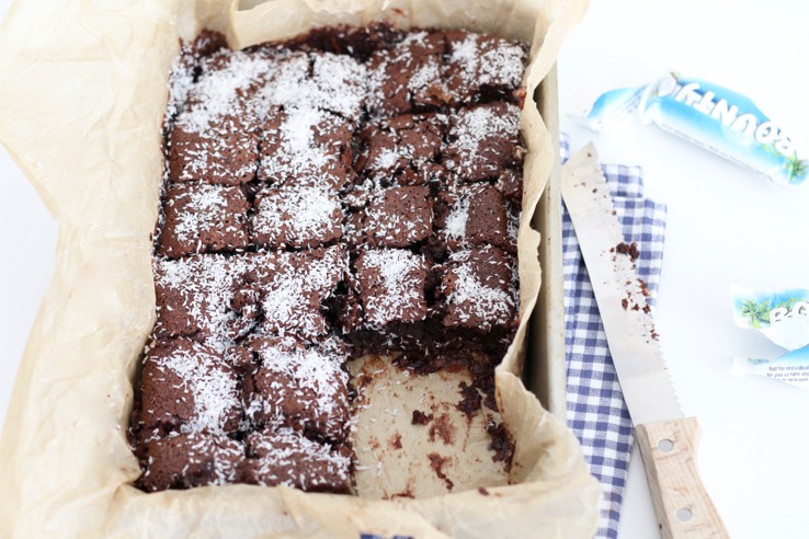Wist je dat er op Chickslovefood ongeveer vierendertigduizend brownie recepten staan? (ok, dat is iets te overdreven). En dat ik daar vandaag schaamteloos een aan toevoeg? Nee? Nou dan weet je het nu. Bij deze, een nieuw brownierecept. Deze keer met heel veel kokos, oftewel Bounty’s.