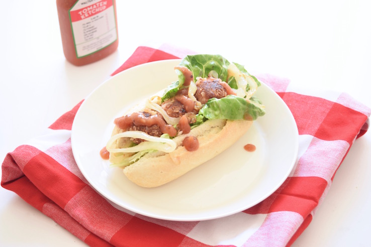 Jep, je leest het goed, gewoon een ordinair broodje bal. En lekker dat -ie is! Ik heb er twee achter elkaar opgegeten, haha.
