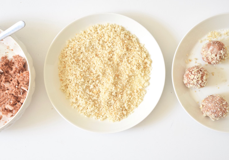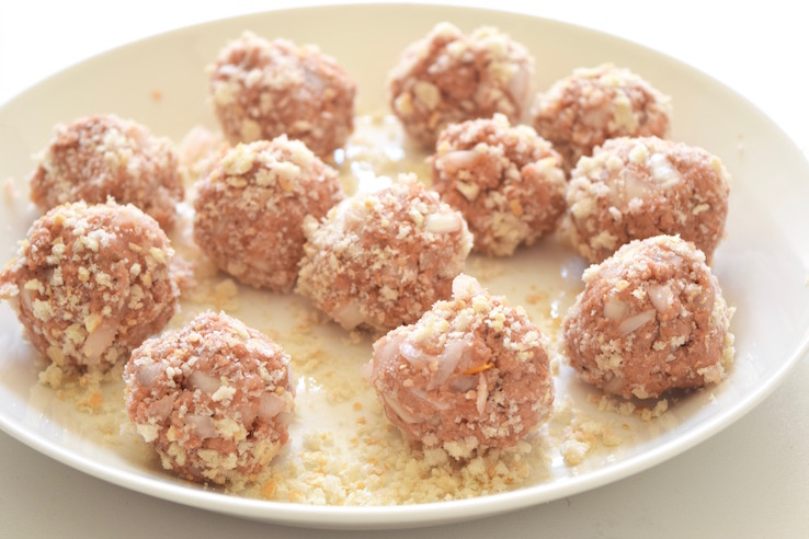 Zelf heb ik gebruik gemaakt van het vegetarische gehakt van de Vegetarische Slager, dat is ‘rauw’ in tegenstelling tot andere soorten vega gehakt (dat is vaak al gebakken zeg maar). Je kunt er dus heel goed balletjes van maken. Wil je nou wel graag vlees eten, dan kun je natuurlijk je eigen favoriete gehakt kiezen.