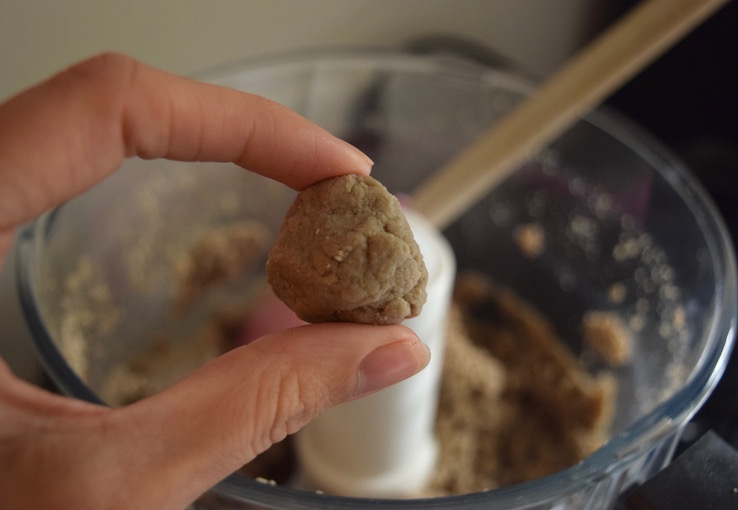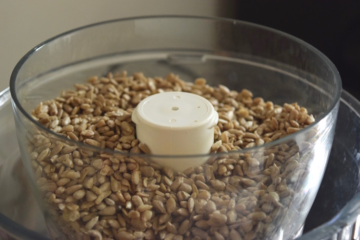 Ik wilde graag een lekker en zoet maar gezond snackje maken, en dan het liefst zonder dadels. Want hoe handig ze ook zijn als je iets wil laten plakken om er een fijn receptje van te maken, ik zit even in een dadel-moe-fase. Maar wat bijkt: als je zonnebloempitten lang genoeg maalt (en dan heb ik het echt over bijna 10 minuten) heb je een plakkerige substantie waar je prrrrima healthy,raw balls van kunt draaien!