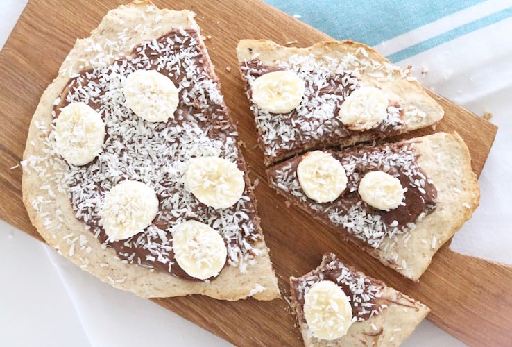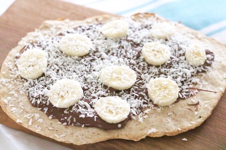 Deze Sinner Sunday gaan we namelijk voor een zoete flammkuchen: een variant met Nutella, banaan en kokos. En lekker dat dat is!