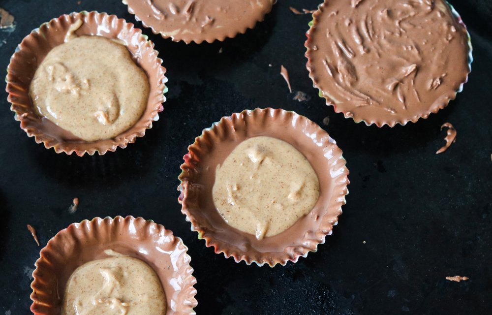 Zin in een echte Amerikaanse treat? Zoek niet verder, hier vind je het ultieme recept: grote chocolade cups met een vulling van pindakaas! Deze peanut butter cups zijn reusachtig, zoet en romig vanbinnen. Sorry not sorry! Grote kans dat je alle ingrediënten hiervoor al in huis hebt, het zijn er namelijk maar vijf.