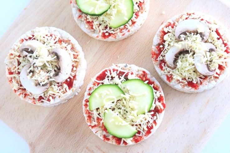 Met de gedachte dat bijna ieder kind blij wordt van pizza hebben we dit recept bedacht: rijstwafelpizza’s! De basis voor deze healthy snack bestaat uit een bodem van rijstwafel met een dot tomatenpuree, geraspte kaas en Italiaanse kruiden. Met een topping van courgette en champignon, maar daarmee kun je natuurlijk lekker variëren!