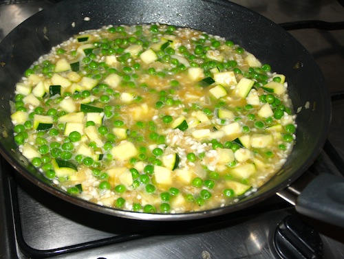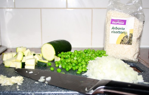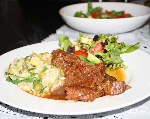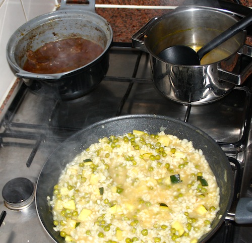 Risotto met groene groenten en stoofvlees