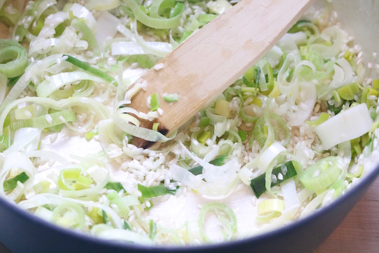 En ook ik looove een flink bord smeuïge, dampende risotto op z’n tijd. Vaak met wat witte wijn erdoor, maar dat hóeft niet, hoor. Sinds mijn kleine man alweer ruim een jaar is, eet hij steeds vaker met de pot mee. Deze risotto maak ik daarom wijnloos, maar is zeker niet minder smaakloos. Enne, zo easy hè, comfort food eerste klas met maar vijf ingrediënten.