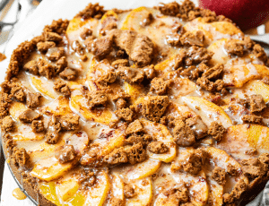 Och, je hebt appeltaart, en je hebt ROMIGE appeltaart. Snap je? Er zit soms een wereld van verschil in, in hoe appeltaart kan smaken. Maar eerlijk, dit is misschien wel onze nieuwe favo. Waarom? Nou, we noemen maar even wat: Bastogne bodem, banketbakkersroom, gebakken appeltjes met kaneel en suiker, koekkruimels on top, karamel swirl van fudge. Ehh.. heb je nog meer nodig om overtuigd te raken?! ROMIG (ja, in hoofdletters, ja) hadden we al gezegd toch? Nou, hup, aan de slag. Bakken maar, deze heerlijke, romige appeltaart!