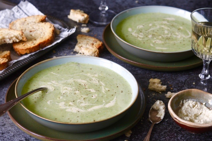 Dit supermakkelijke, lekkere recept voor romige courgettesoep maak je met maar 5 ingrediënten. De kruidenroomkaas en het geroosterde speltbrood maken deze vegetarische soep helemaal af!