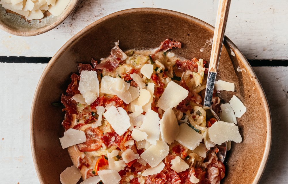 Als dit gerecht je goed bevalt, dan mag je deze green goddess courgetti ook niet overslaan. Ga je voor romig? Dan is deze romige avocadosalade er eentje voor op je lijstje. Ben je dol op koolhydraatarme maaltijden? Ga dan voor Het koolhydraatarme e-book. Als je juist een vullende maaltijd zoekt, dan is deze hartige galette met parmaham helemaal jouw ding. Maar maak nu maar eerst snel deze romige courgetti met krokante parmaham!