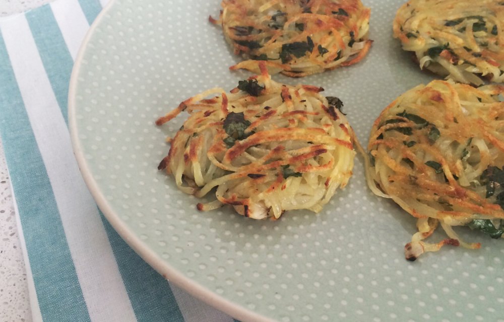 Aardappels, een uitje, knoflook, wat bladpeterselie, peper en zout en je bent er. Nina maakt deze heerlijke röstirondjes.  En jij kan dat ook! Hier heb je het recept.