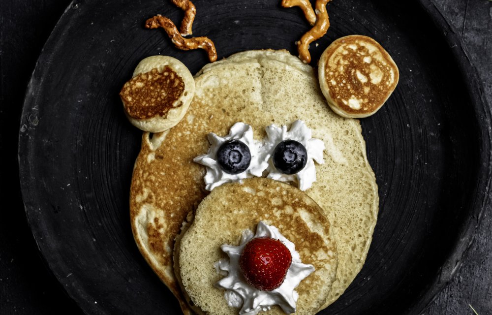 Deze pannenkoekjes zijn toch super cute?! Wij als volwassenen worden hier ook heel blij van, haha. Je maakt 4 Rudolph-pannenkoeken al in 20 minuten klaar. Om er een Rudoph van te maken, maak je als eerste een grote pannenkoek. Vervolgens maak je 3 kleinere, voor de neus en de oren. We gebruiken pretzels, aardbeien, slagroom en bosbessen om ‘m helemaal compleet te maken ;). Enne.. hartstikke leuk om ze samen met je little one(s) te bakken voor ‘t kerstontbijt of voor de kerstbrunch! Naast dat ze er leuk uit zien, zijn ook nog eens héérlijk, ook wel belangrijk! 😉