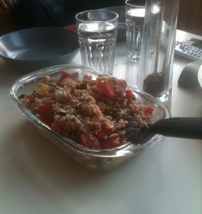 Een flinke schaal vol. Lekker en voedzaam!Dit recept lijkt op m’n favo gnocchi-schotel en ik maak het ook vaak met pasta. Eigenlijk komt het altijd neer op het volgende: 1. Niet zo zin om te koken (…) 2. Alle groenten die je nog in huis hebt opbakken of rauw in een schaal doen. 3. Een koolhydraat toevoegen (spelt dus in dit geval) 4. Door elkaar husselen met geitenkaas.