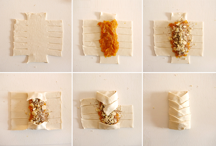 Ken je van die pecanbroodjes, gemaakt van bladerdeeg? Mmm, daar kun je mij echt heel erg blij mee maken! Dit recept doet me daar een beetje aan denken, alleen worden deze bladerdeeg vlechtjes gemaakt met abrikozen en amandelen.