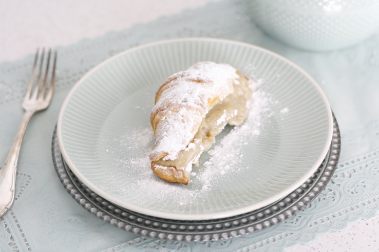 Zelfgemaakte croissants ‘s ochtends is al een feest. Maar als je deze vult met zelfgemaakte banketbakkersroom en bestrooid met poedersuiker, dan heb je heel gemakkelijk zelfgemaakte roomcroissants. Komen ze!