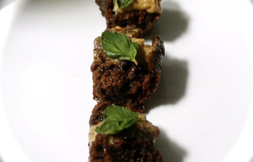 Een wit bord en een groen muntblaadje maken je cake helemaal af!