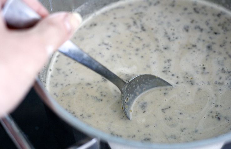 “Bewaartip: Bewaar de vla met een laagje plastic folie erover, anders krijg je vellen.”
