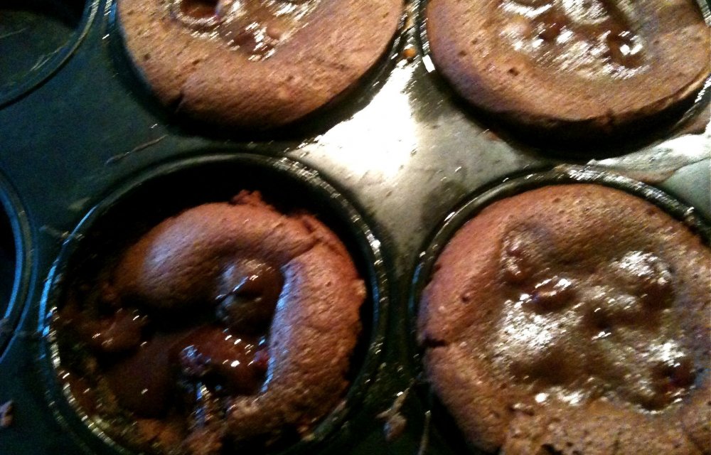 Zondag: we mogen weer zonder schuldgevoel zondigen :-). En dat doen we vandaag weer lekker met chocola, want daar worden we vrolijk van, toch? We maken een warm chocoladecakeje, waarbij wanneer je je vorkje in het cakeje zet, de chocolade er zo uit komt lopen… Jammie!