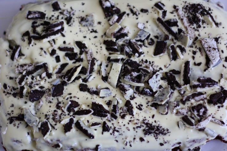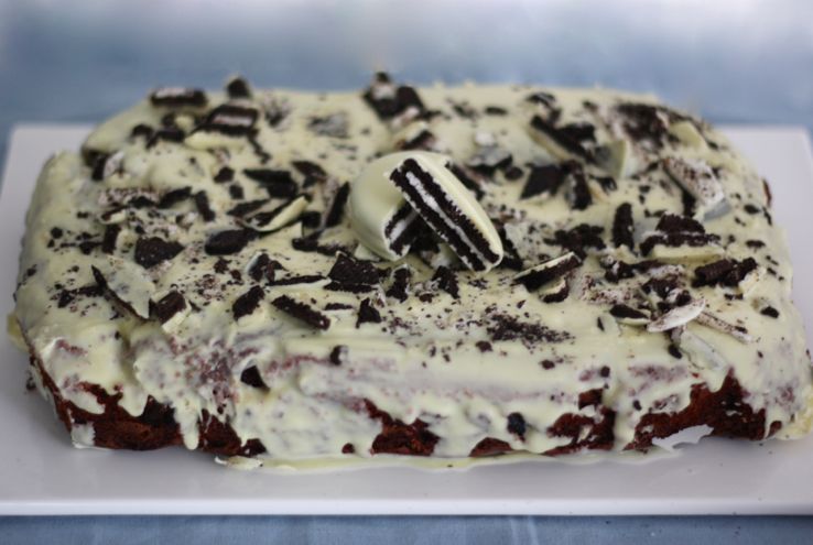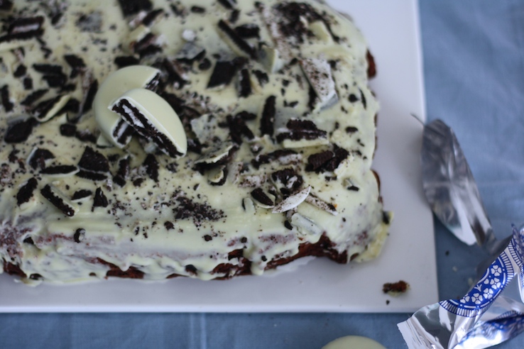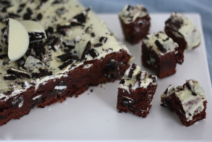Het recept komt van mijn zoetekauw-vriend Marcel. Hij maakte deze voor de kraamvisite van Samuel. Een simpele uitvoering: met een kant-en-klaar brownie-pakket waar je alleen water bij moet doen. En dan vervolgens deed hij tussen de stukken Oreo on top ook nog blauwe muisjes. Ik vond het zo leuk om een jaar later deze taart weer te serveren. En dit keer maakte ik ‘m helemaal zelf. Wat een succestreffer. Wat een heerlijkheid. Maken. Echt. Doen.