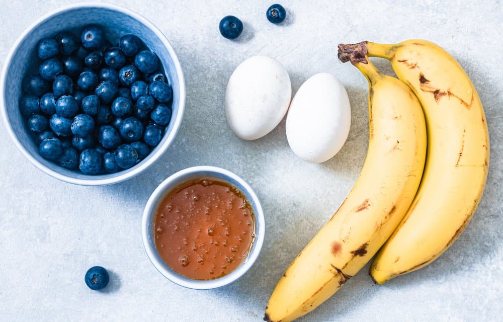 Skinny bananenpannenkoekjes met blauwe bessen