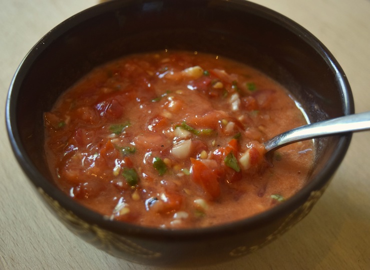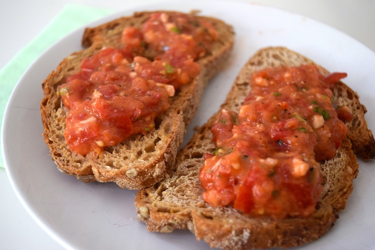 Bart is echt gék op knoflook. Zo gek dat hij rauwe tenen wegknaagt, alsof -ie op pinda’s knabbelt. Bah! Niet normaal. Ik vind knoflook ook heel lekker hoor, maar dan in een gerecht. Dan kan het niet knoflokerig genoeg voor me zijn, maar da’s toch wat anders dan zo ‘uit het vuistje’. Anyway, Ik wilde een lekker en gezond broodbeleg voor Bart maken en naast knoflook tomaten gebruiken, ook daar is hij lichtelijk aan verslaafd.