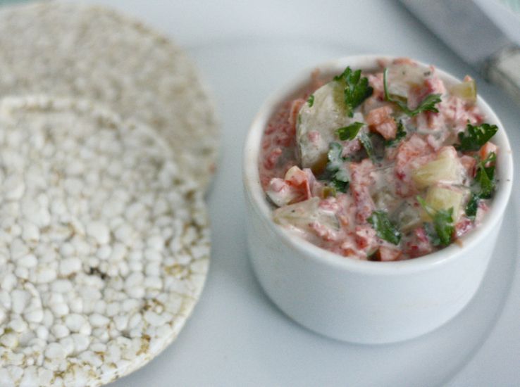 Een lekkere frisse groentenspread voor op brood met zure augurk, frisse kwark en zoete paprika en wortel. En dat natuurlijk met slechts 6 ingrediënten. Want het is maandag 🙂