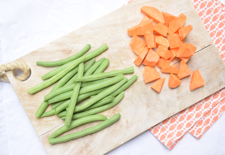 Een snelle lunch dus. Oke, oke, een boterham met pindakaas is altijd sneller. Maar ik wil graag óók een beetje slank doen en aan de vitamines denken, ik heb m’n before pregnancy body immers nog niet helemaal terug. Dus hierbij een recept voor een snelle salade met sperziebonen die je perfect met lunch of diner kunt eten. Voedzaam dat -ie is! Op de foto’s zie je één portie, hieronder heb ik het uitgetypt voor twee personen. En wat is -ie lekker.