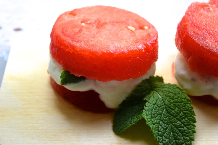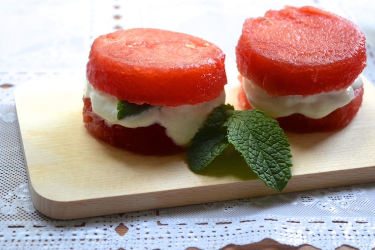 Nou ja, cakejes… Als je de foto ziet, snap je wat ik bedoel. ‘Cakejes’ van watermeloen met een vulling van dikke Griekse yoghurt met vanille. Mmm. Eet deze lekkertjes als healthy Sinner Sunday, of gewoon lekker tussendoor. Of als ontbijt, why not?
