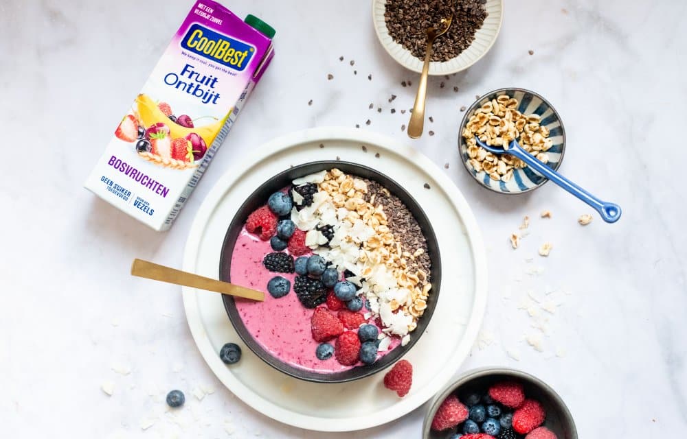 Gesponsord Heerlijk hoor, een bammetje kaas als ontbijt af en toe. Maar als we heel eerlijk zijn, prefereren we tóch een tikkie gezonder ontbijt. En daarin wisselen we natuurlijk lekker af. Onze nieuwste ontdekking? Deze zálige smoothiebowl met bosvruchten. Uiteraard ontzéttend makkelijk om te maken (hallo, je kent Chickslovefood toch) wat ideaal is als je op tijd naar je werk moet of de kids ‘s ochtends moet brengen. En natúúrlijk is deze bowl ook heel erg lekker (duh) en je kunt volop variëren met ingrediënten en toppings. De belangrijkste smaakmaker? CoolBest Fruit Ontbijt bosvruchten.