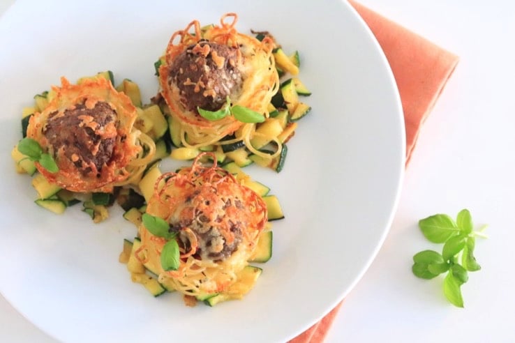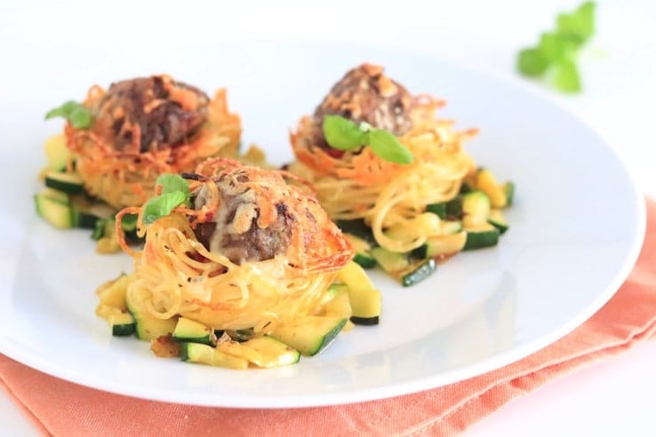 Wij hebben een leuke, kidsproof variant op de ‘spaghetti meatballs’ (hét gerecht uit de meest bekende scène uit de kinderfilm Lady en de Vagebond 😉 )spaghetticupjes met gehaktballen en courgette. Een feestje op je bord!