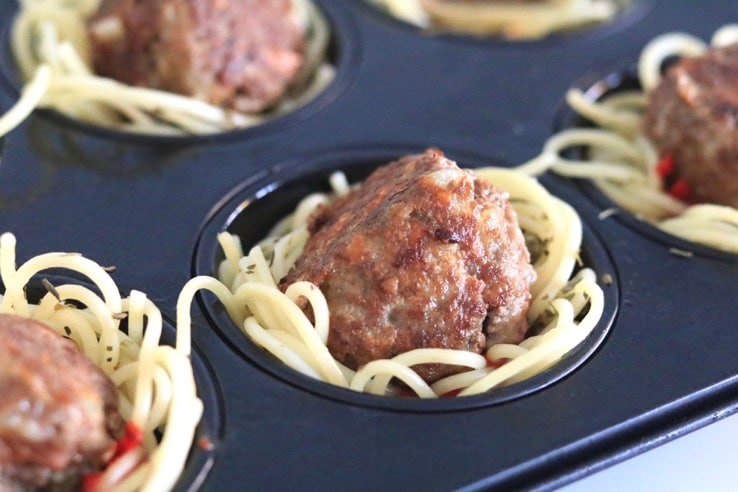 Spaghetticupjes met gehaktballen