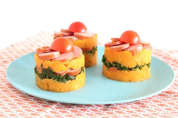 Een heerlijke dampende pan met boerenkool stamppot, wie is er nou niet groot mee gebracht? Wij zijn gek op dit winterse gerecht, maar vinden dat het voor je little ones best een beetje gezelliger kan. Daarom hebben we een feestelijk, kidsproof stamppot torentje bedacht met zoete aardappel, rookworst en boerenkool.
