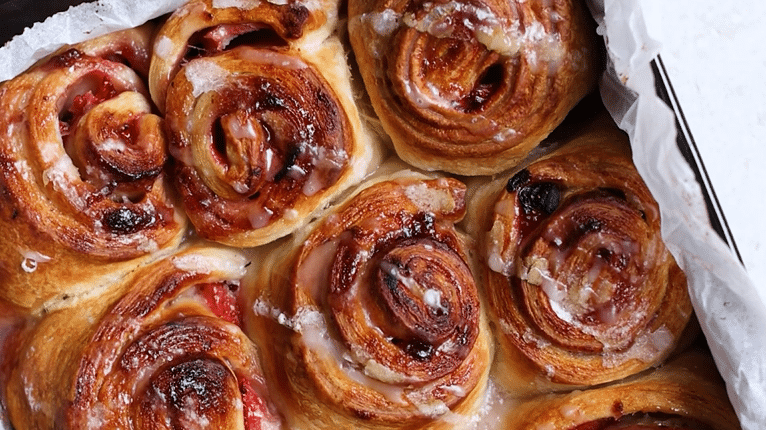 Naast deze strawberry buns benieuwd welke ontbijtjes nog meer lekker zijn voor in ‘t weekend? Wat dacht je van 5x ontbijten met gezonde wafels? Maar ook deze pannenkoeken traybake is een favorietje.  Blijf je liever lekker ontbijten met croissants? Dan kun je gaan voor een croissantrol met ei, wentelteefjes van croissants of gevulde croissants met amandelspijs en jam. Genieten!!