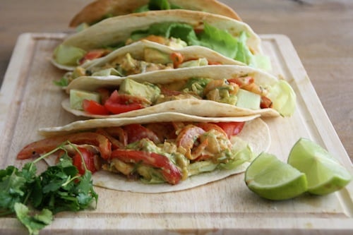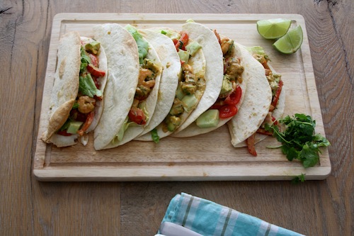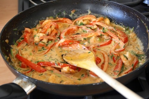 Ooit at ik in Barcelona ergens mij een lokaal restaurantje een gerecht met wraps en garnalen. Iets wat ik zelf nooit zou bedenken, maar het was goddelijk. Voor me werd een grote pan geserveerd vol met garnalen in een romige saus met paprikareepjes. Een stapel wraps ernaast en smullen maar. Zoekende naar wat variatie voor mijn pak wraps, kwam dit recept van de week opeens bij me naar boven.