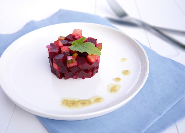Het is weer tijd voor een supersimpel vegetarisch receptje dat best wel heel snel klaar is, en er toch heel mooi uitziet op je bord. Alleen het snijwerk kost je even wat tijd, maar verder hoef je voor dit vegetarische bietentorentje echt amper wat te doen!