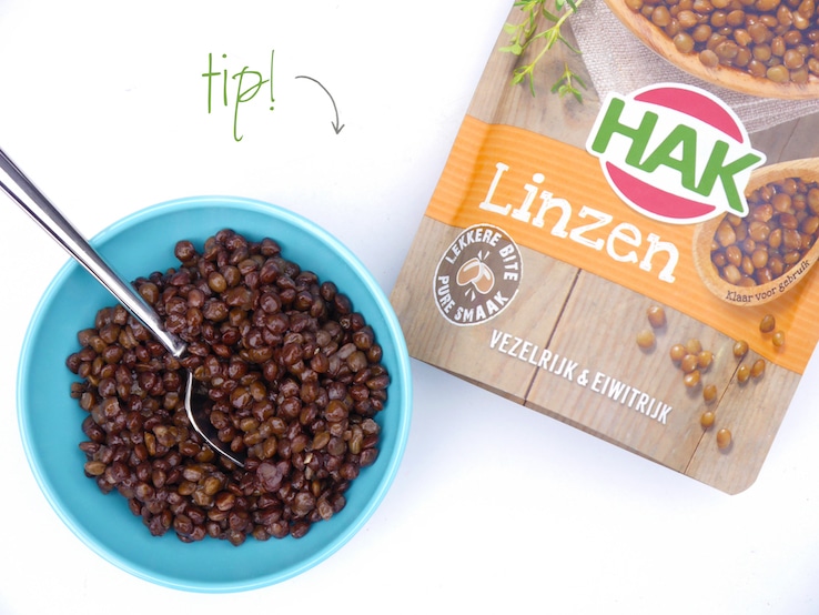 TIP! Wil je deze salade nóg voedzamer maken, voeg dan wat linzen toe! En lekker dat dat is…Nina en Elise zijn niet voor niets ambassadeurs van deze fijne bonen :). Ideaal zijn de linzen in stazak van HAK. Je kunt ze direct gebruiken, zonder ze nog te hoeven koken of af te spoelen.
