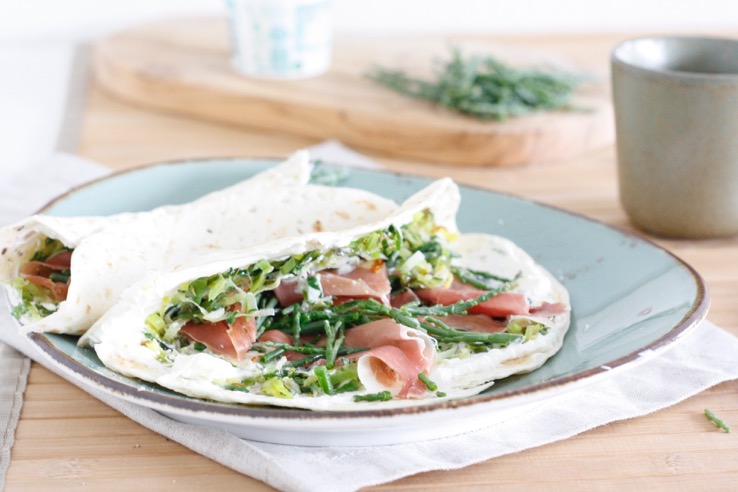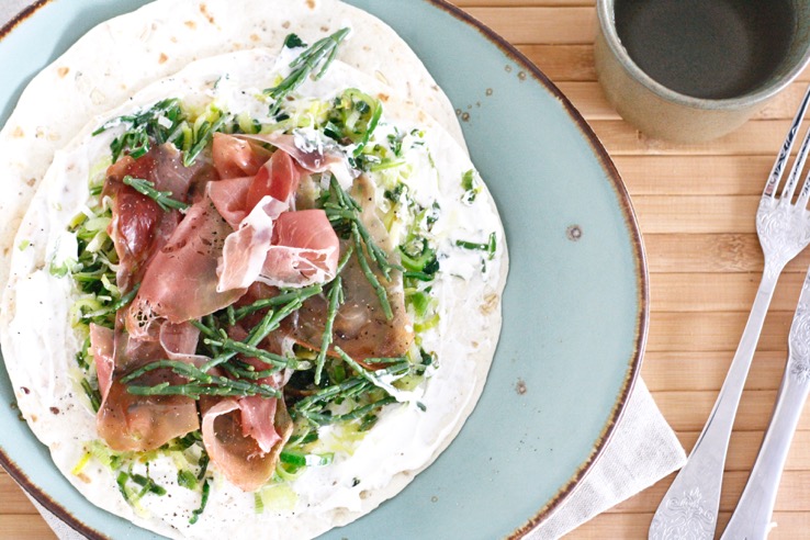 Geloof me als ik zeg dat dit een lekkere combi is. Want ja, ik kan me voorstellen dat je bij zeekraal niet gelijk aan parmaham denkt. Ik at deze combi laatst op het terras aan de haven van Scheveningen en ik was verkocht! Hierbij een romig laagje met prei, wow. Zo fijn weer eens wat anders!