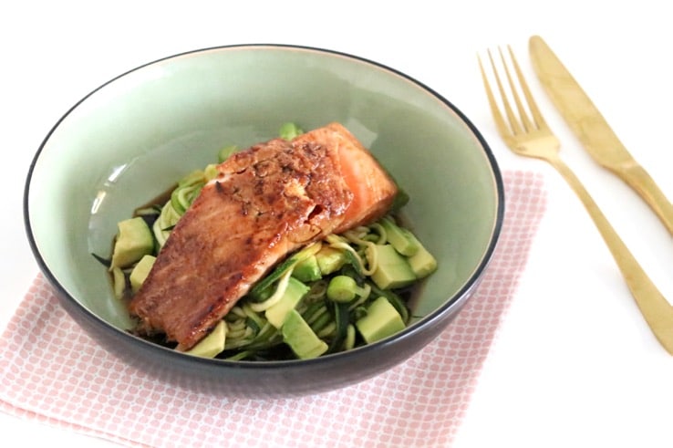 Stil je vis cravings vanavond meteen en maak dit recept met verse zalm en courgettenoedels. Je marineert de zalm eerst even in soja en miso. Hierdoor krijgt de zalm een heerlijk Oosters tintje. Doordat er ook nog avocado en bosui in het gerechtje zitten, wordt het echt helemaal healthy.