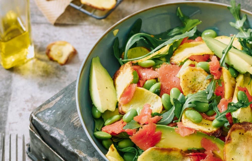 Zalmsalade met aardappelcrisps met 5 ingrediënten