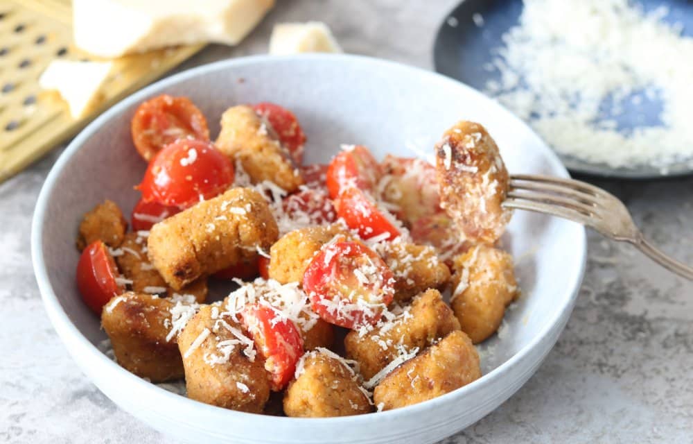 Gnocchi zelf maken moeilijk? Nee hoor! Zeker niet met deze gnocchi met maar 5 ingrediënten! In de video van vandaag maken we een zoete aardappel gnocchi met cherrytomaatjes en Parmezaanse kaas. Hmm.. lekker dat die is! 😉