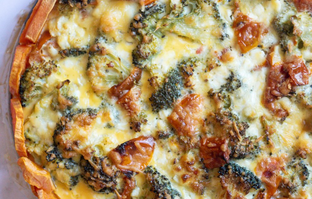 Ben je op zoek naar een gezond en simpel recept dat perfect is voor lunch, diner of zelfs to go? Deze zoete aardappelquiche met broccoli is een echte topper! Met slechts een paar ingrediënten zet je een voedzame en smaakvolle maaltijd op tafel. De bodem van dunne plakjes zoete aardappel maakt deze quiche glutenvrij en geeft een verrassend zoete en stevige basis. Samen met de romige vulling van eieren, cottage cheese, broccoli en semi-zongedroogde tomaten, is dit een gerecht dat zowel voedzaam als lekker is.