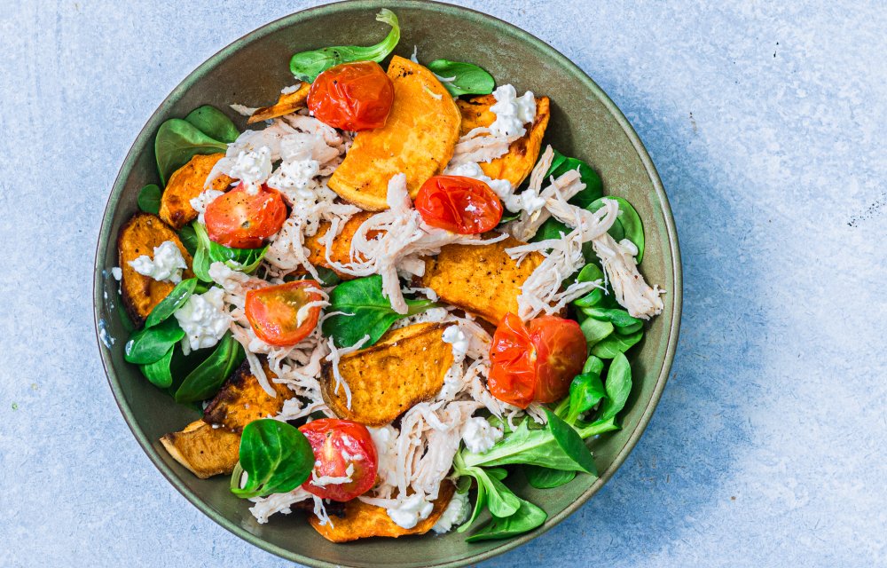 Een perfecte Skinny Six vinden wij… deze zoete aardappelsalade met pulled chicken is zo klaar en megalekker. Zo lekker, dat hij misschien wel op ons favorietenlijstje belandt. Deze zomerse salade maak je compleet met geroosterde cherrytomaatjes en een frisse dressing van citroen. Perfect om in het zonnetje van te genieten. Kruip op je favoriete tuinstoel of een kleedje in het park en geniet van deze gezonde maaltijd.