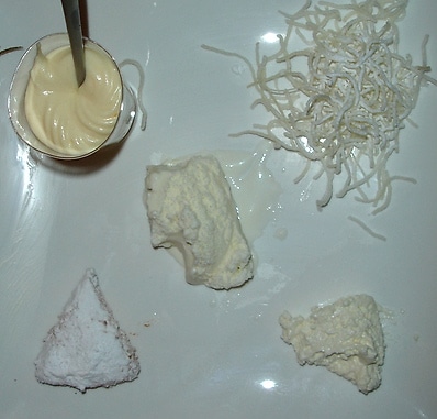 De mihoen pof je door een pluk ongekookte mihoen heel kort in hete frituurolie te leggen. Het zwelt supersnel op en het is prachtig wit. Verwijder het echter gelijk nadat het is opgezwollen, anders wordt het bruin. Bestrooi ook de gepofte mihoen met poedersuiker.