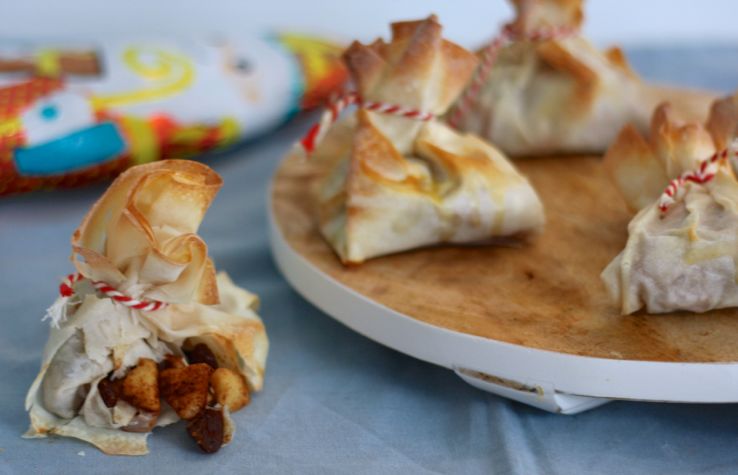Hoe leuk zijn deze healthy gevulde zakjes van filodeeg? Als je 1 appel fijn snijdt en mengt met 50 gram rozijnen, 2 theelepels kaneel, en 2 theelepels honing, heb je een gezonde vulling voor je filodeegzakjes. En die maak je door een vel filodeeg dubbel te vouwen en hier een schep van het appelmengsel op te scheppen. Beetje ei langs de randen en dichtvouwen. Van boven dichtbinden met wat kooktouw en even 10 minuten in de oven op 175 graden. Geinig toch? Op de stap-voor-stap foto hieronder kun je duidelijk zien hoe je ze maakt!