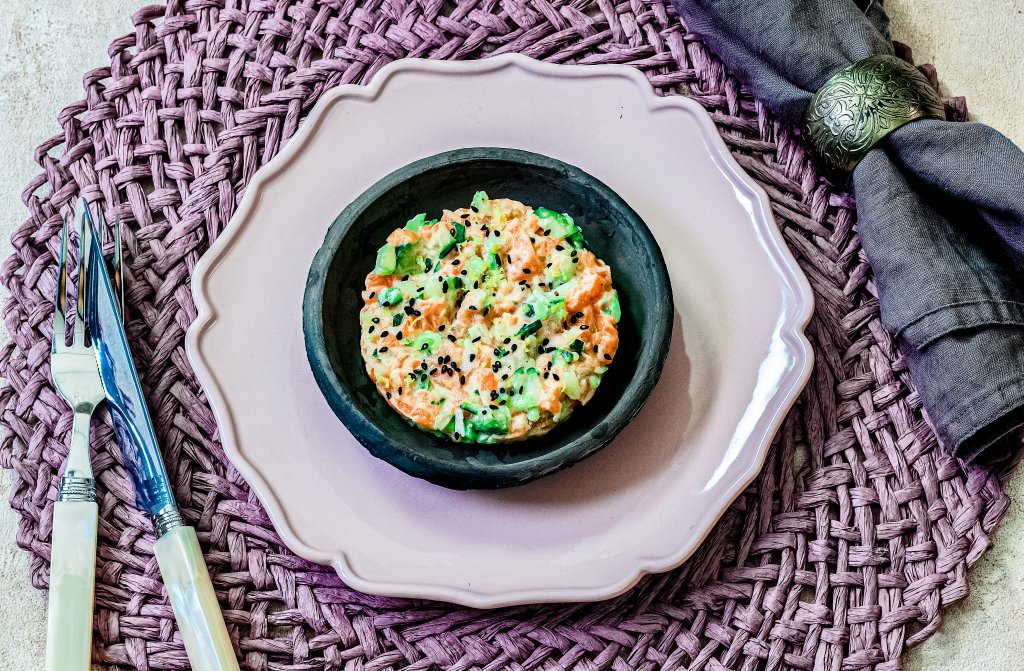 De zalmtartaar is een welbekende amuse voor de feestdagen. Vooral lekker dankzij de Aziatische twist van wasabi en Japanse mayo.