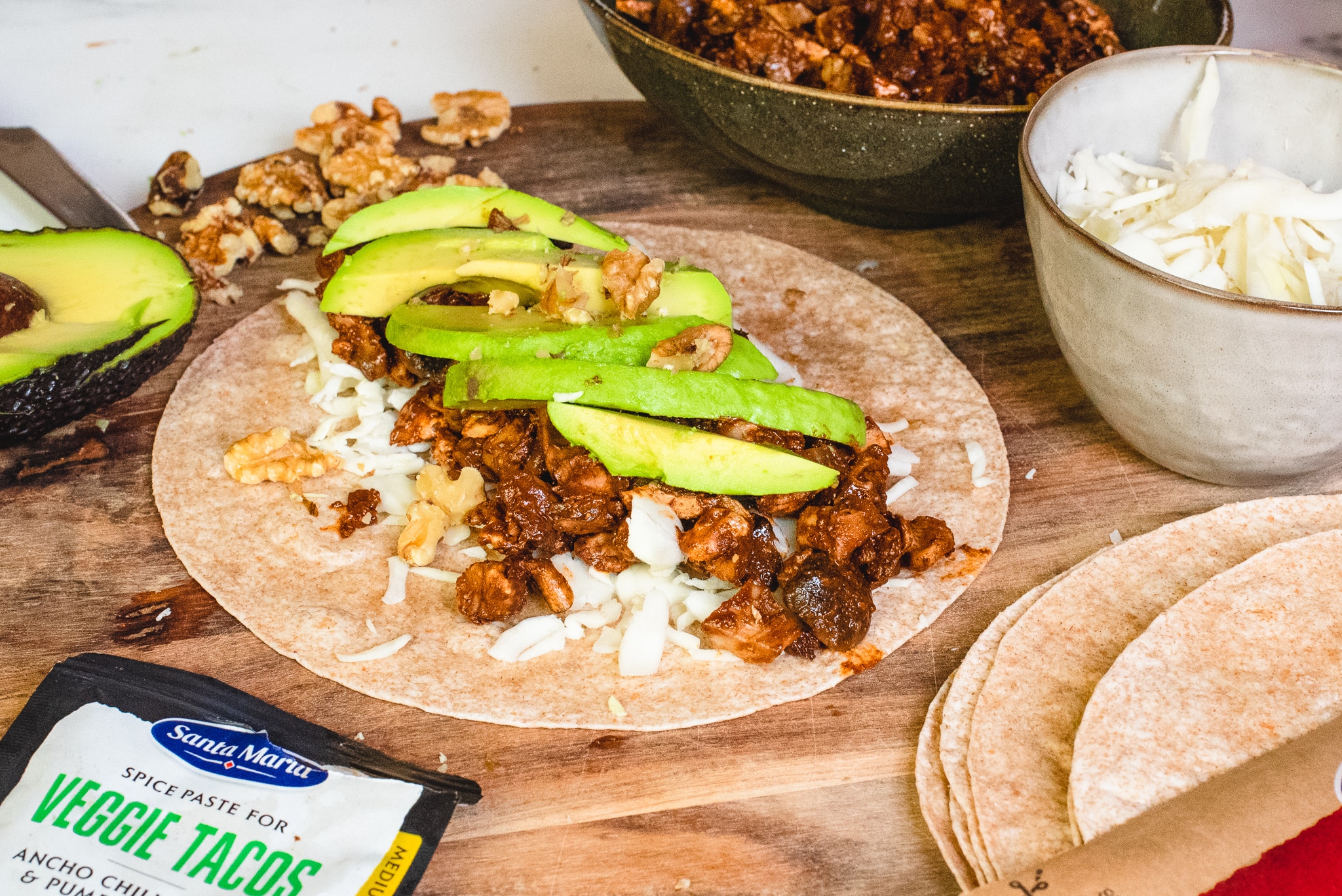 Vegan wraps met walnoten en paddenstoelen