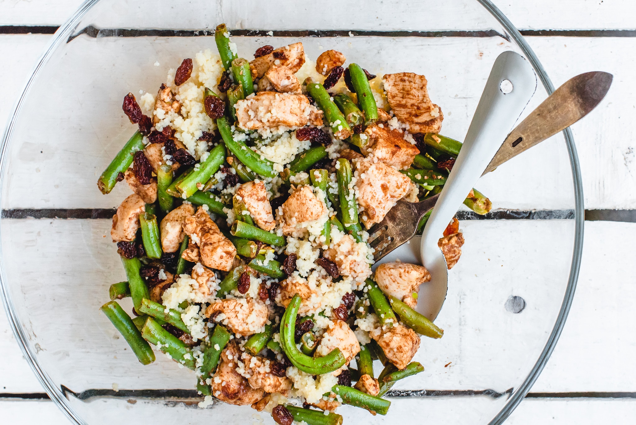 Deze couscous maak je met rozijnen, sperziebonen, koek- en speculaaskruiden en kip. Klinkt gek, we know. Maar geloof ons nou: lekker is-ie gegarandeerd.